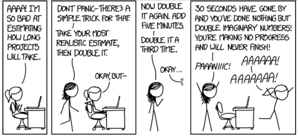 Moreover, people are notoriously bad at giving estimates. Almost everyone is an optimist when thinking about how hard something might be. Engineers forget to include testing or any of the things that might go wrong. Product managers may add some contingency, but given the level of uncertainty, particularly for larger or long-lived pieces of work, they may be the bearers of bad news in the short-term (“this is going to take a while") or the long-term (“I know I said this wouldn’t take long….”). Neither is a position that they really want to be in.