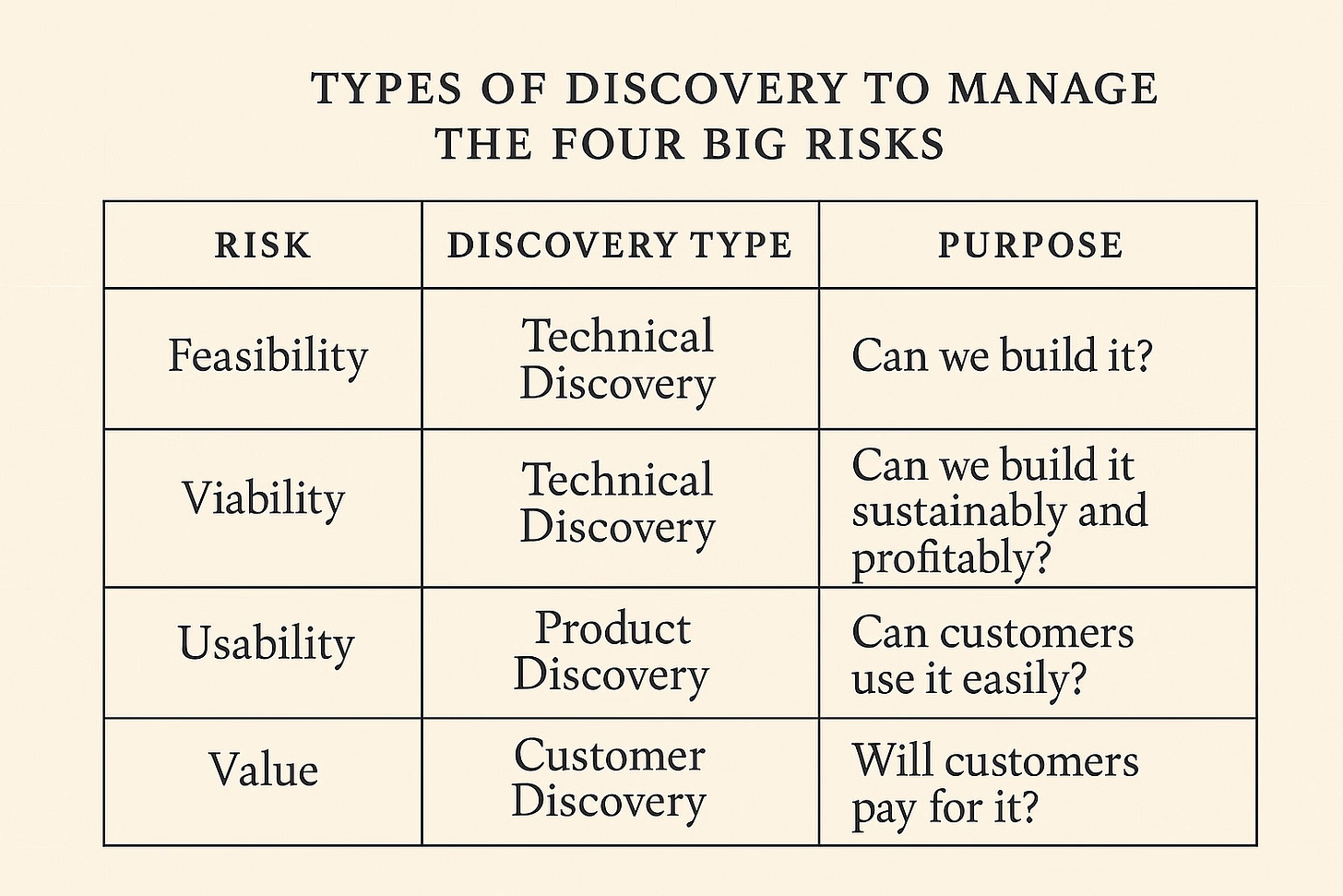 Discovery is fundamental to the management of product risk. Taking the perspective of the Silicon Valley Product Group’s four big risks, we can see how.