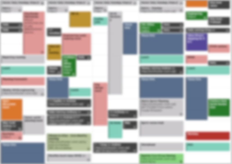 Clearing my calendar allowed me to start again. I rescheduled my most important meetings (1-1s, skip levels), eliminating accidental clashes and giving me space to think. Ceremonies such as sprint reviews were either delegated to others to schedule, or put in for a time that worked for me repeatedly.